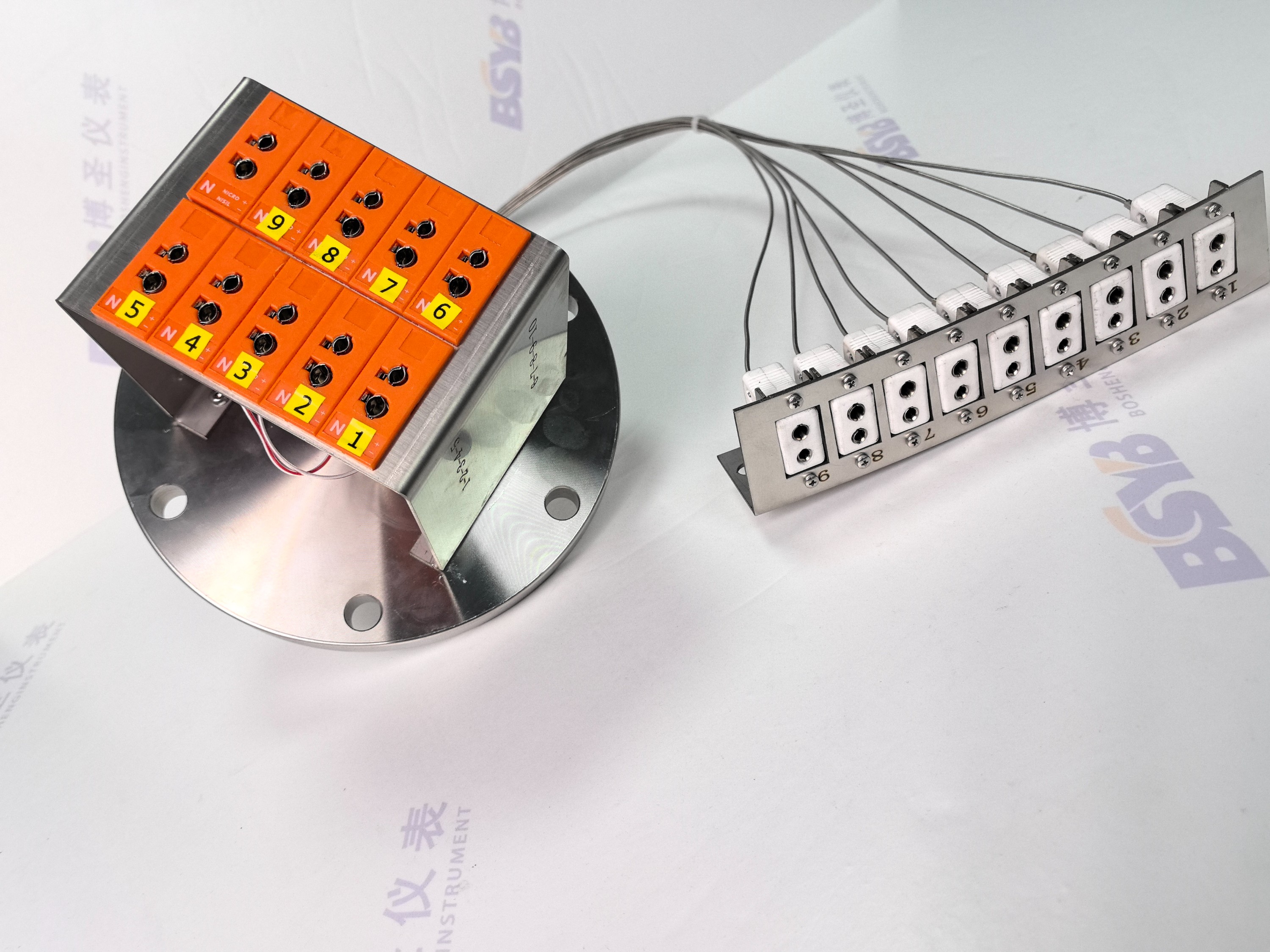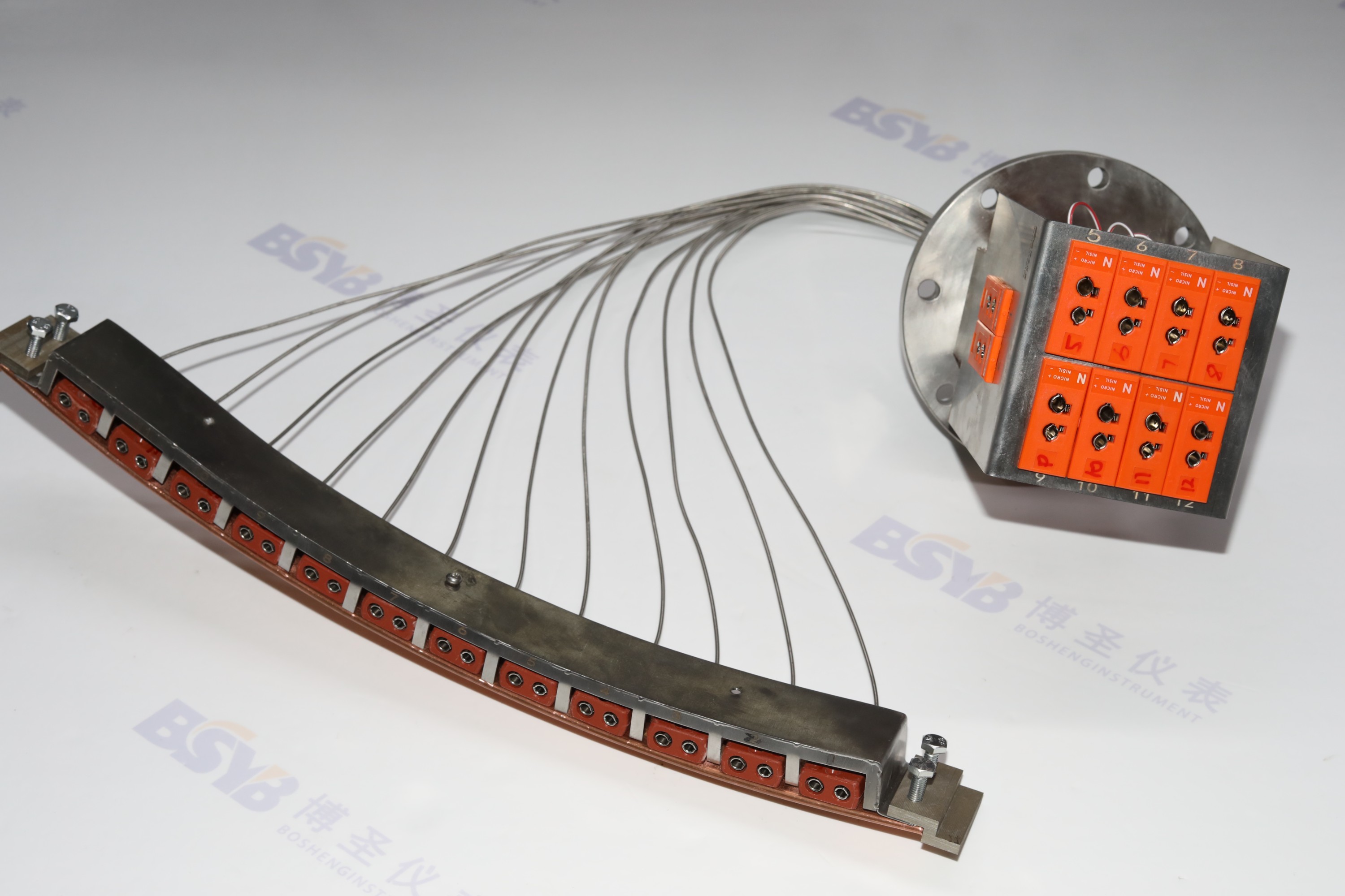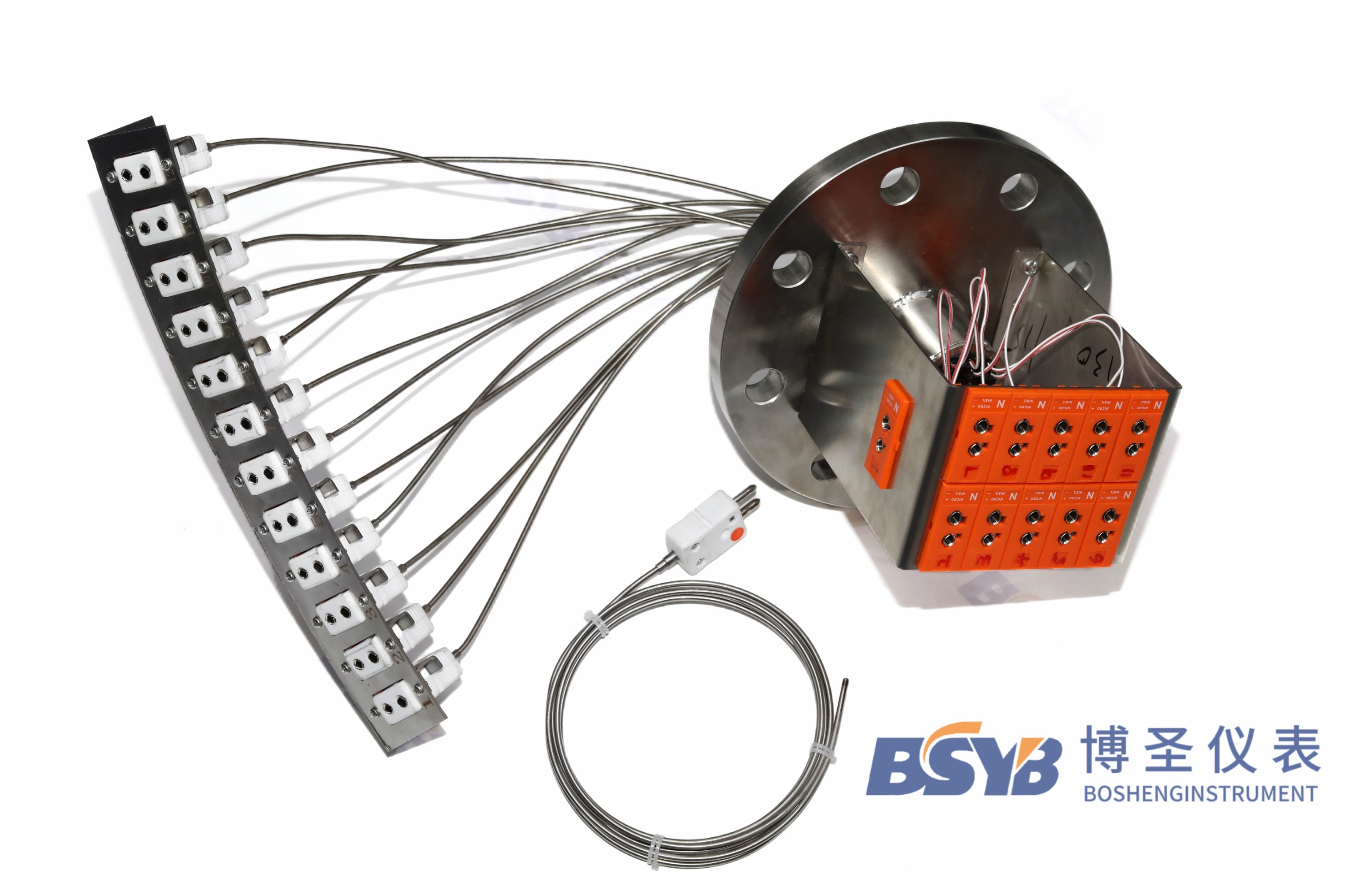 工业炉多点信号装置,广泛运用于设备多点测温、炉温均匀性检测等场景。常规有6点、9点、12点、15点,可最多集成30组信号,同时也支持不同分度号的多个信号源搭配组合。多点信号装置可以整合炉体上大量分散的热点偶,实现集中管理,使设备布线更加规范、整洁,便于设备管理和后期检修。